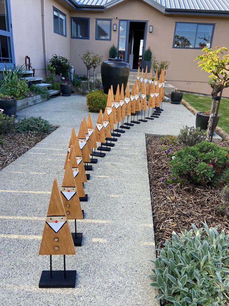 Using pallet wood and ply, Mr Scott cuts out the shapes at Timaru’s MenzShed, then brings them home to finish them off.