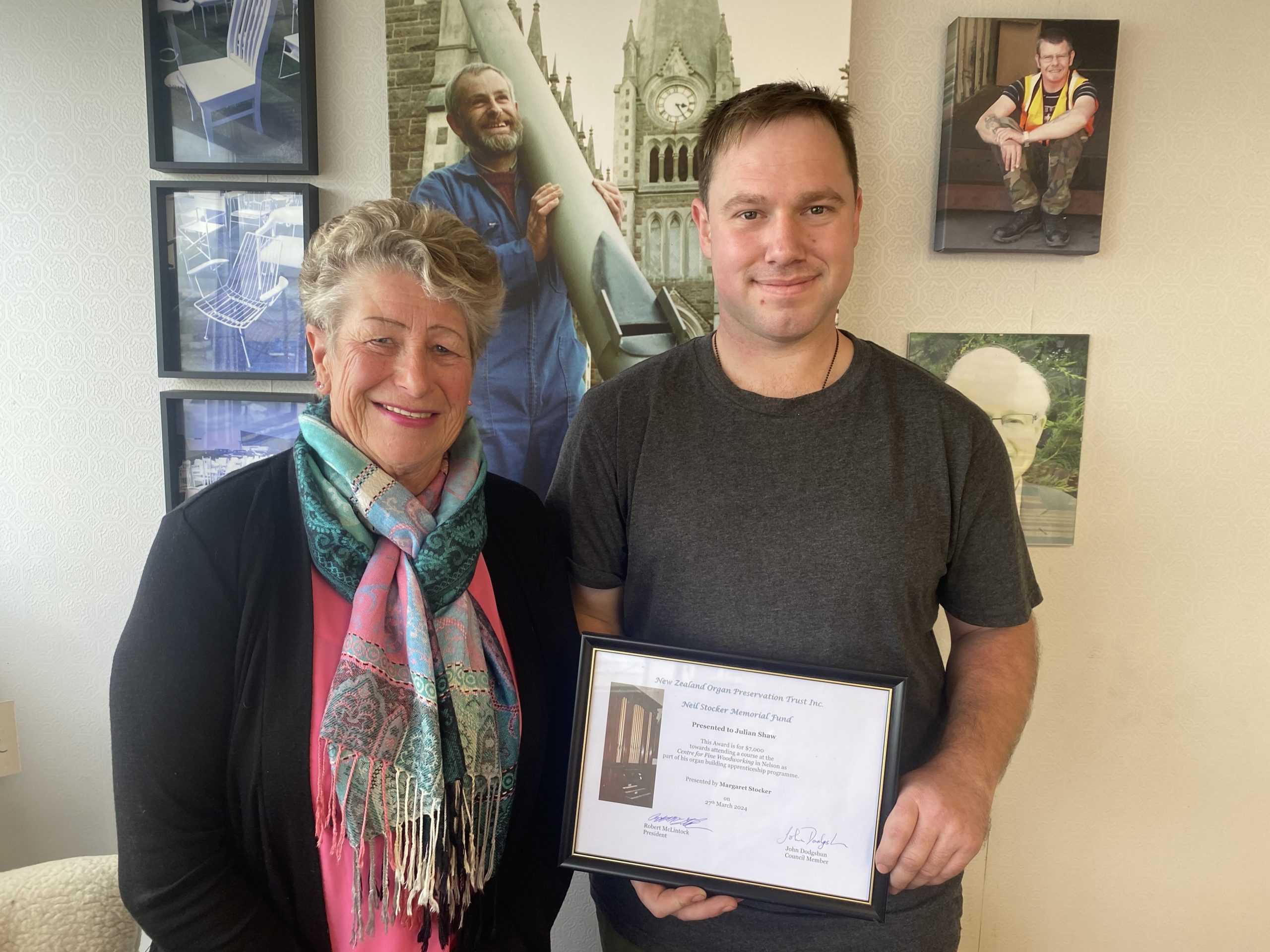 South Island Organ Company employee Julian Shaw has received $7000 from the fund, to go towards attending a fine woodworking course in Nelson later this year.