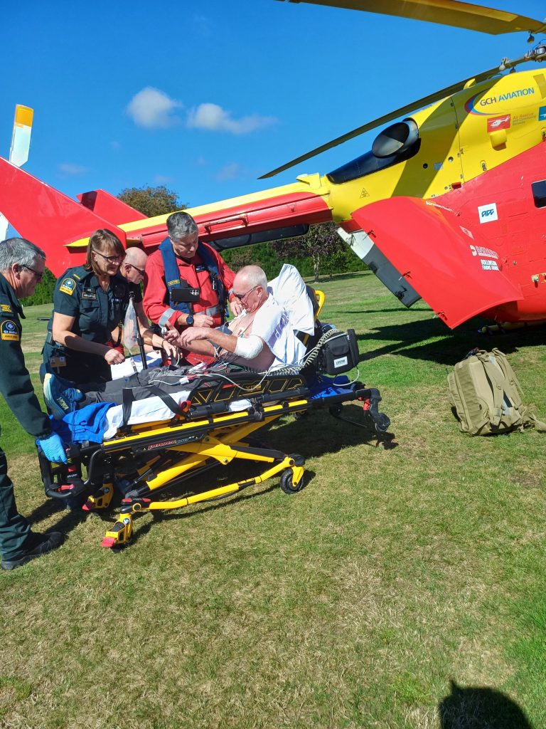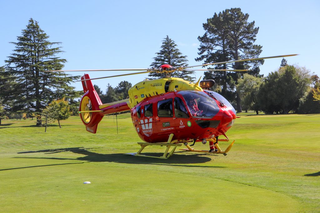 The rescue helicopter landed at the Pleasant Point golf course, just by the clubhouse.