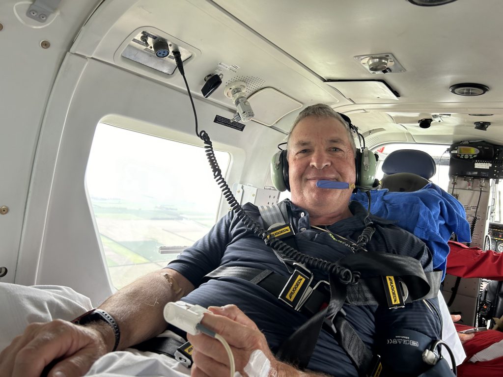 ‘‘The next minute there was the big red and yellow butterfly coming out of the sky to get me to Christchurch Hospital,’’ Mr Wallace said.