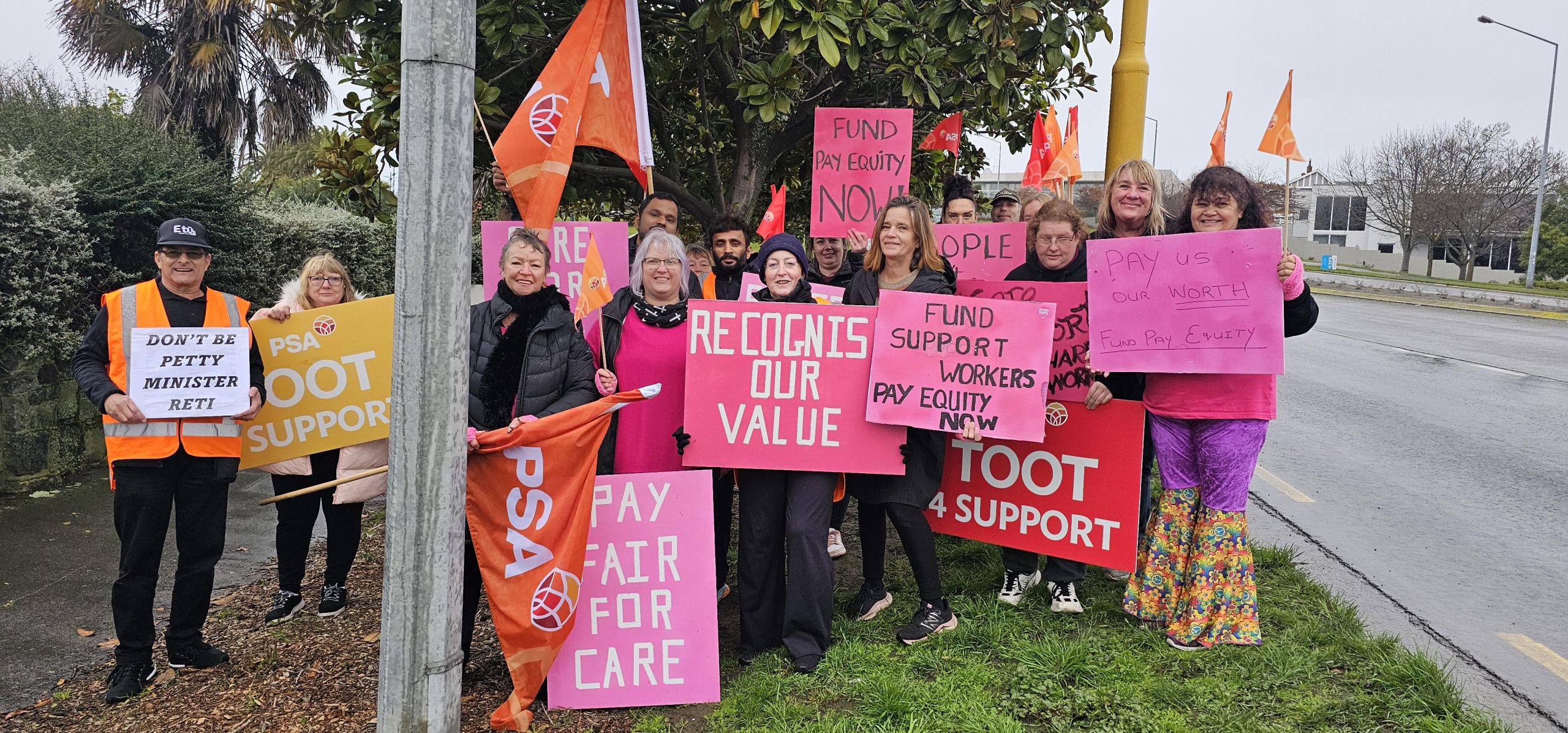 On Monday, support workers in South Canterbury took to the corner of Wai-Iti Rd and Evans St with placards as part of a nationwide rally for pay equity in the sector.
