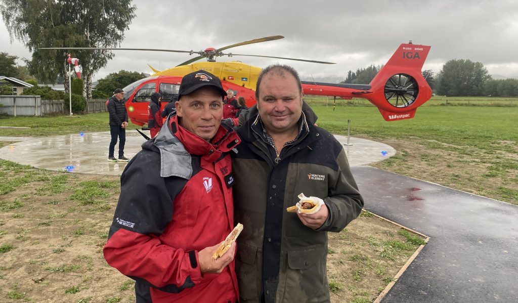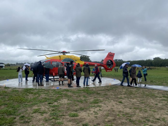 The ribbon was cut in Fairlie last Thursday at the town’s new helipad, when about 150 people braved the weather to mark the moment.