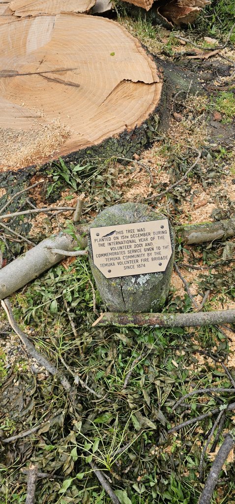 Public safety was behind the sudden felling of a commemorative tree in Temuka recently.